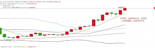 以太坊这一波上涨较大饼来看更为强势,出现了补涨行情,连续创新高,K线上整体呈现阶梯上行,各技术指标来看都是属于非常良好的上涨形态,但是周K来看币价当前围绕布林上轨运行,说明当前上方有一定承压,短线上关注回落风险,尤其当前价格临近千点整数关口,短线上方压制关注日线布林上轨2970附近,行情触及这一带可尝试接空,止损带3000整数关口上方就好,下方短线接多位置可放在日线级别MA7日均线2800附近,激进接多可在四小时布林中轨2820进场,防守带2800下方。