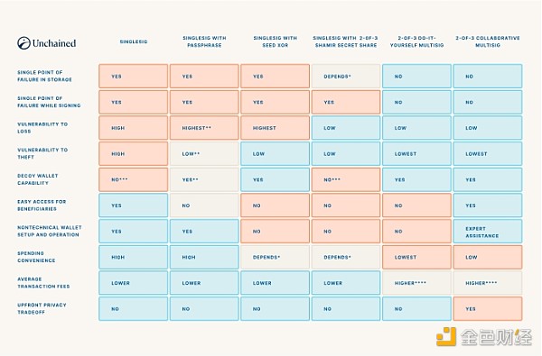 正如上面的图表所示,自托管比特币的不同结构之间存在权衡,这意味着没有一种普遍正确的方法。为了确定单签名或多签名对您来说哪种模型更好,您必须首先确定您的偏好和优先事项。