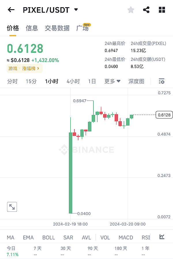 2月19日PIXEL上线币安,我灌水了一年多的web3游戏Pixels,终于看到一点回报。
