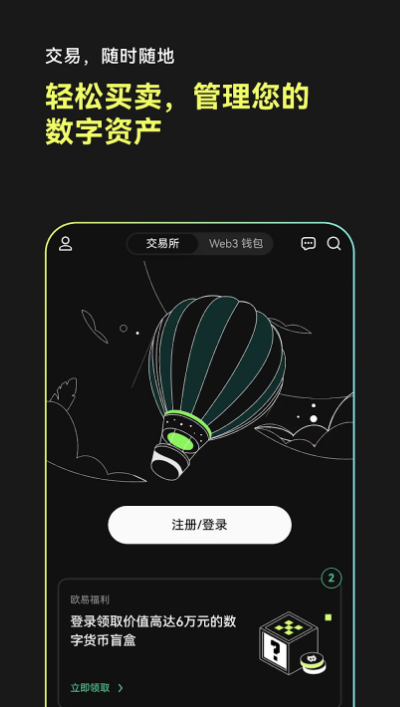 1、打开欧易APP,点击"注册账号",您可以自由选择手机号注册和邮箱注册两种注册类型。
