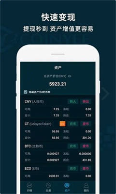 3.即时充值、快速提现的高性能交易引擎,每秒一万单,保证一切快捷方便;