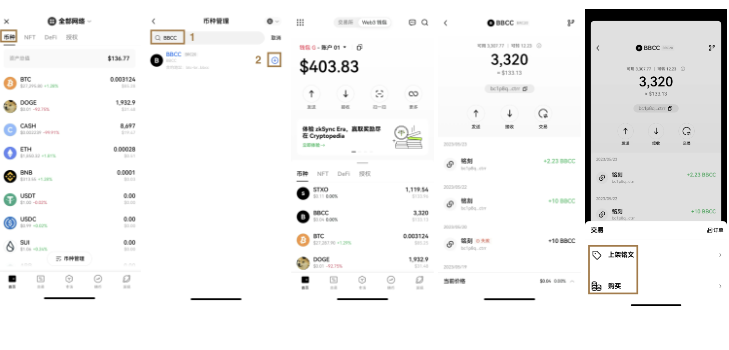 点击币种管理,搜索币种,点击 。返回首页,即可看到你的 BRC-20 资产。点击某一 BRC-20 资产,进入该币种详情页,可查看其历史交易记录。