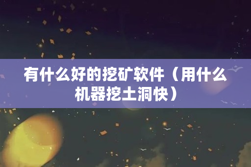 有什么好的挖矿软件(用什么机器挖土洞快)