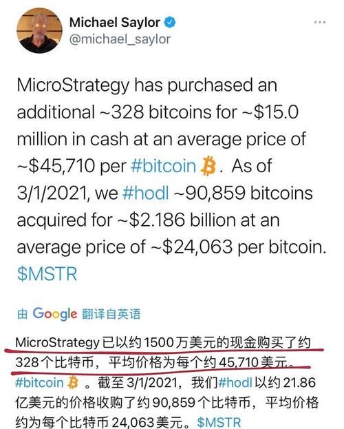 微策略自2020年7月开始长线投资,且从未卖出,迄今共投入59.3亿美元买进比特币,持仓均价为31,224美元。随着比特币大涨,其持仓价值已达到99.1亿美元,未实现利润逼近惊人的40亿美元、公司股价也跟者水涨船高。