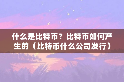 什么是比特币?比特币如何产生的(比特币什么公司发行)