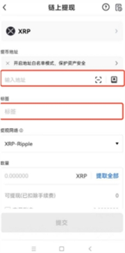 2.粘贴或扫描第三方平台的接收地址,选择提币网络,输入提币数量,确认无误后点击【提交】。