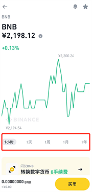 3.进入币种的行情趋势界面,币种的价格行情趋势会清晰的为您呈现,您还能点击【1小时】、【1天】、【1周】、【1月】、【1年】,来快速了解,目前的行情趋势。