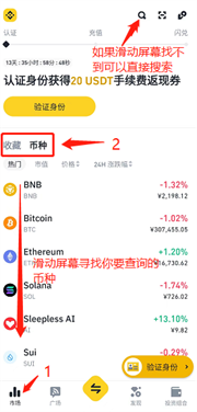 1.币安app交易所,进入币安交易所主界面,点击左下方的【市场】选项,进入市场页面,随后您会看见许多币种的行情价格,您可以滑动屏幕来寻找您要查看的币种行情,或者点击右上方的【搜索】符号,搜索您想要查询的货币行情。(您还可以如下图2所示,点击【收藏】来自定义您的行情,下次打开就不用再去搜索了)