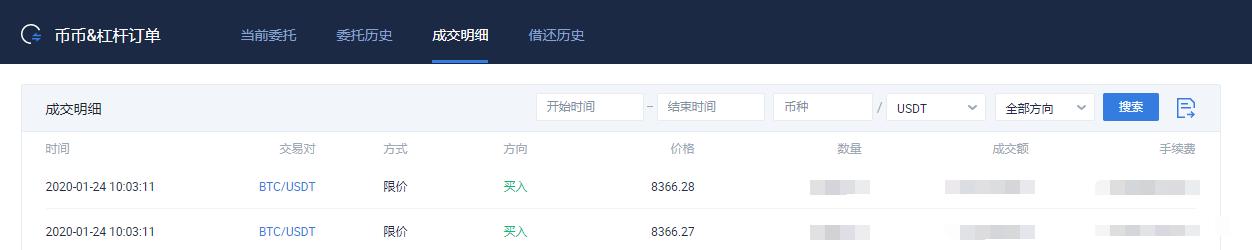 但是我注意到btc到达了关键支撑位8300附近,于是全部买入btc,交割记录如下: