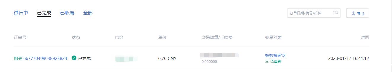 在2020年1月17号的时候,usdt的折价率大概是-1.5, 当时价格6.76, 我果断出手,买了一些usdt,这是交割记录: