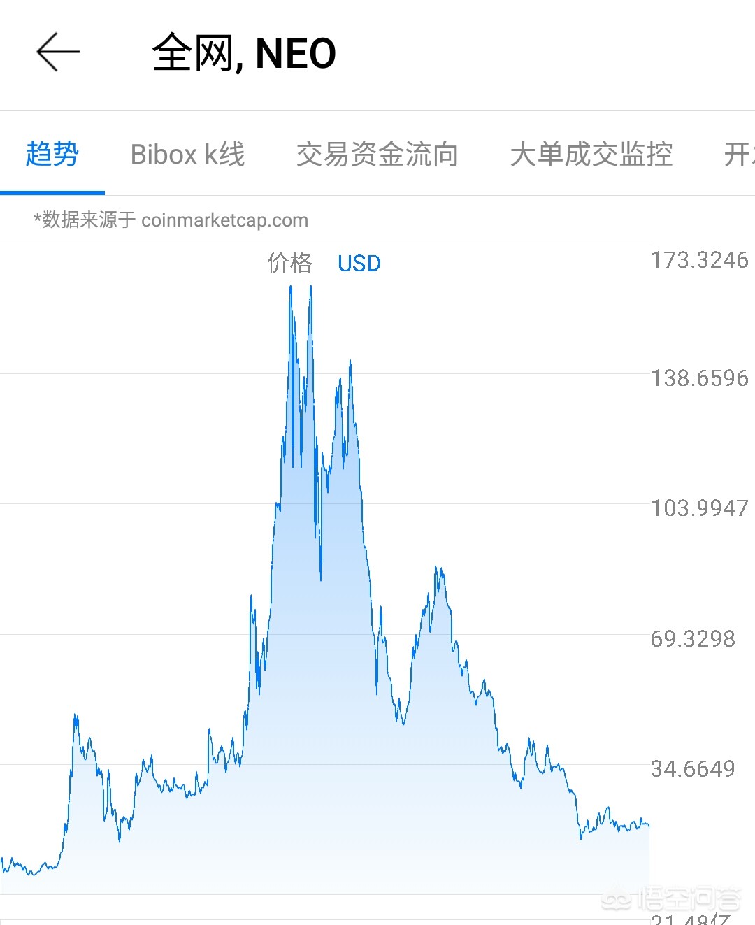 除此之外就是去年的小蚂蚁NEO,作为去年国内的公有链之王它的火爆程度不亚于今年的EOS。2017年年初的最低价0.1美元,12月31日之前的最高价85美元,全年涨幅850倍。2018年1月的最高价其涨幅达到1600倍左右。目前价格一落千丈基本维持在100元附近,总市值排名第15。