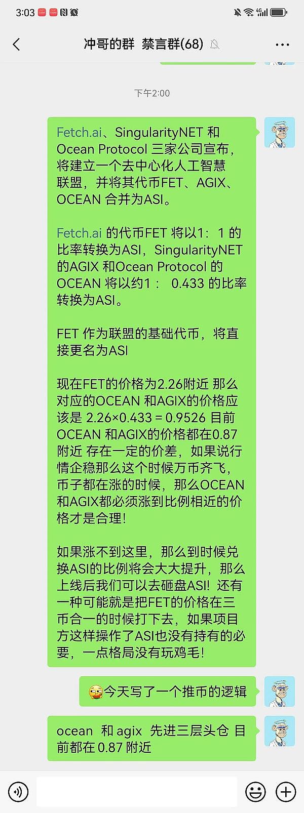 三币合一将在未来一周都是币圈的热度话题,从明天开始!你会看到很多群里在谈论ASI,在讨论AI,财经上面也会有消息公布,微博和X上面也会有很多博主分析ASI!!这都是正常情况,请保持淡定!
