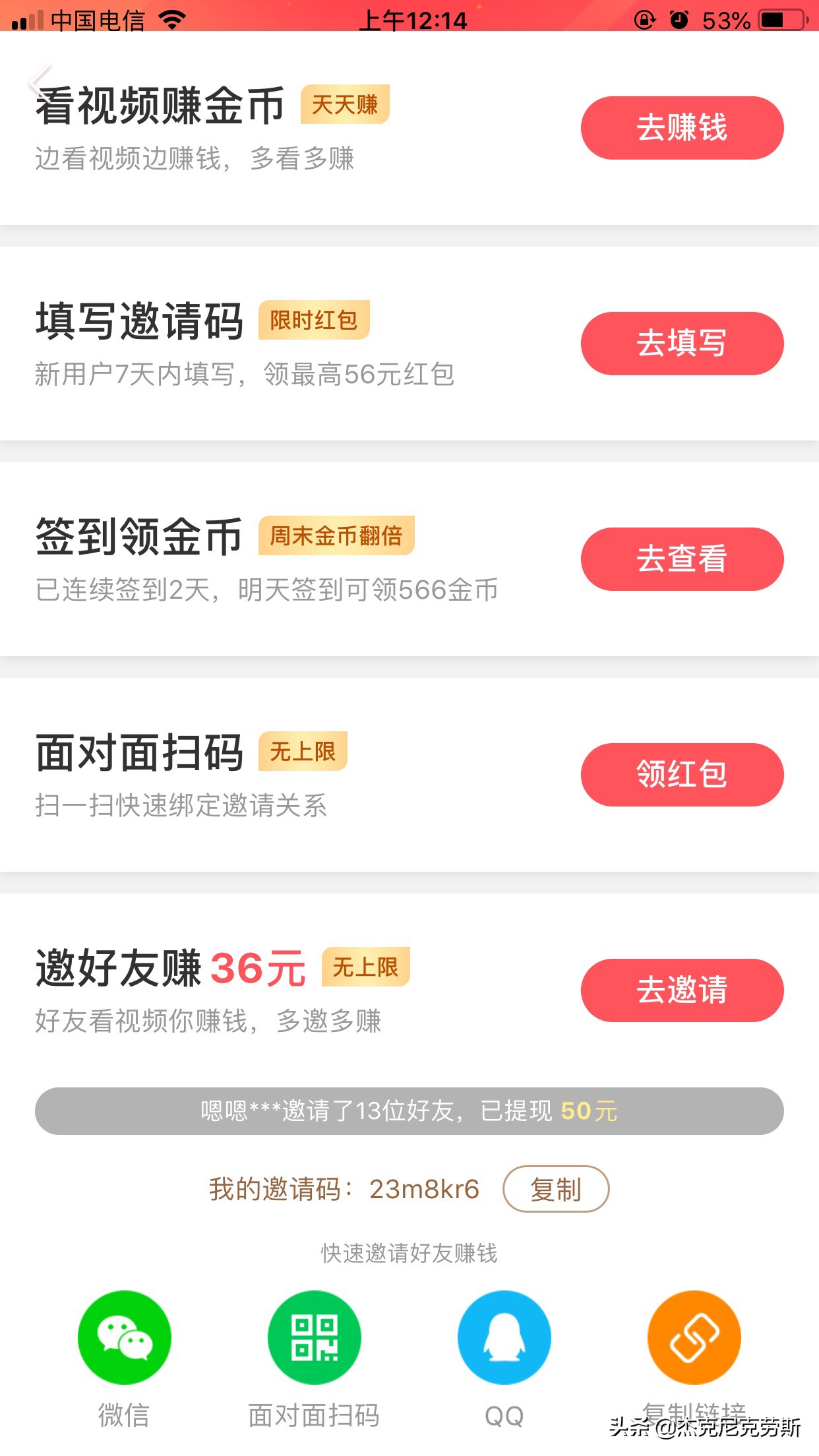 个人感觉看新闻我首选今日头条极速版,看视频我首选抖音极速版。好了写这篇文章的主要目的是怎么赚零花钱,举个栗子,以邀请10个人为单位,两款APP同时邀请,头条3元,抖音2元即刻到账50元,后续还有头条32元,抖音38元,合计700元在路上往来赶,这才是邀请10个人收益,100个人,1000个人,好刺激啊,哈哈,大家赶快行动吧!