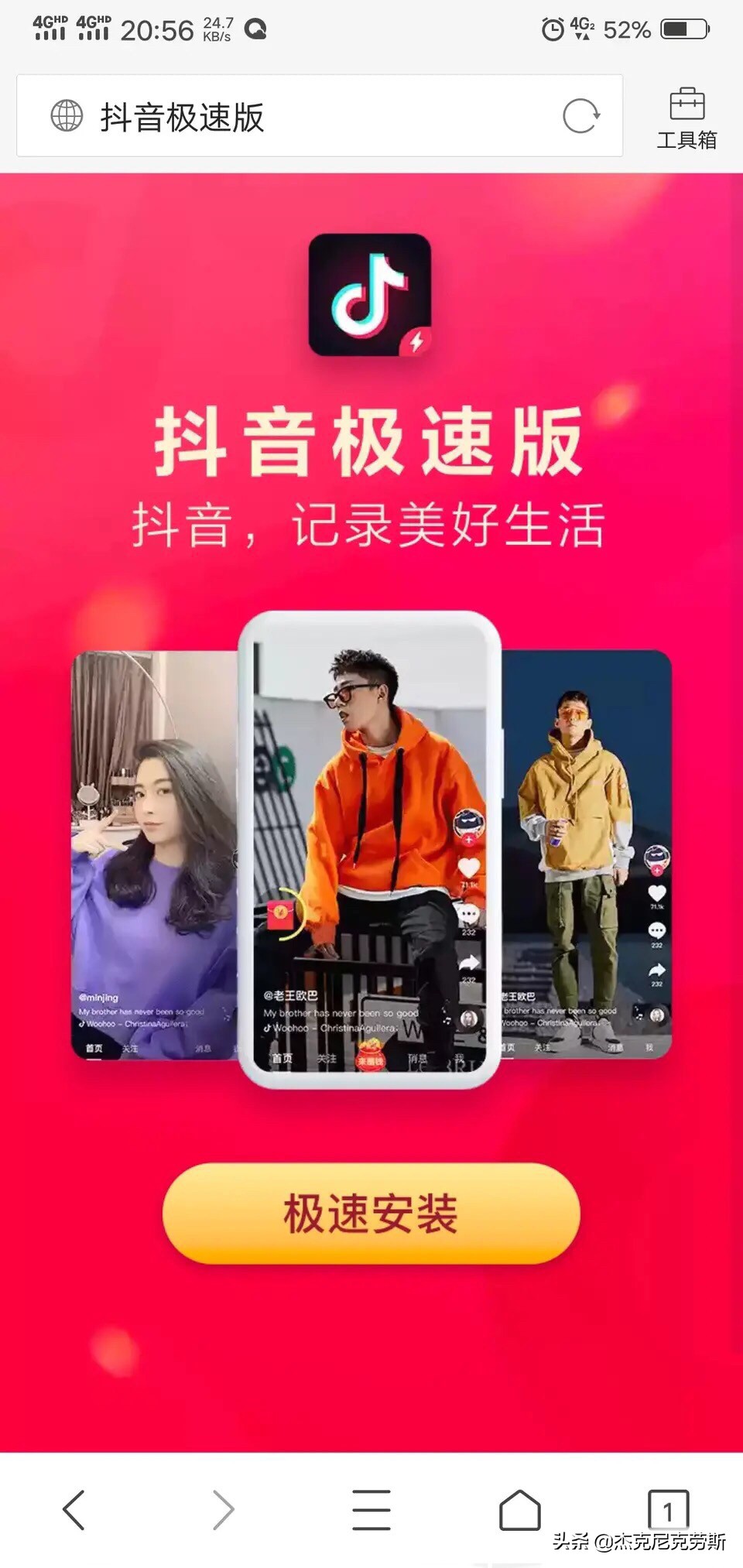 1:抖音极速版跟抖音一模一样,抖音看视频没有收益,抖音极速版,看视频有钱赚!目前内测阶段,活动力度很大,暂只支持安卓手机