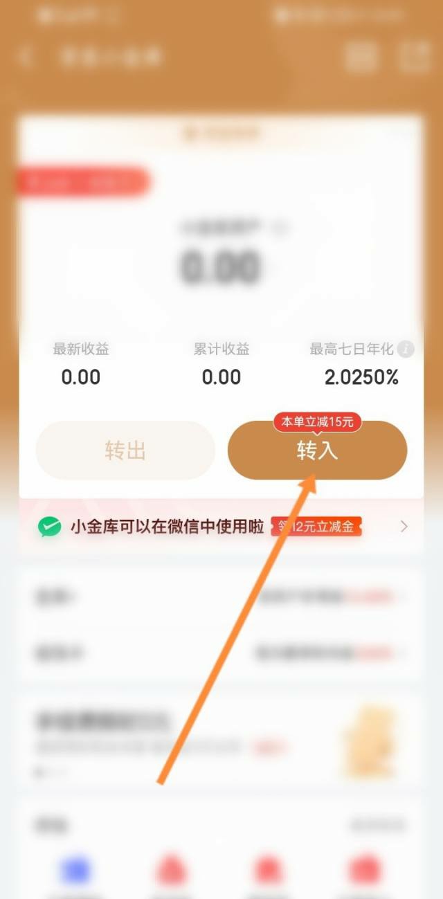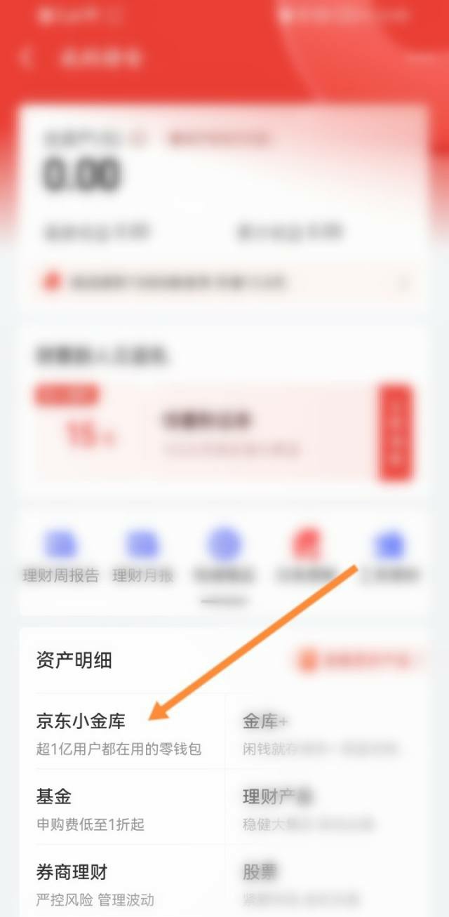 点击下面的京东小金库选项。