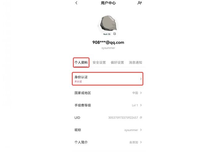 登录账号后,点击左上角个人中心图标--【个资料和设置】--【个人资料】--【身份认证】,进入身份认证页面。如果未完成认证,请点击【立即认证】,您需要上传证件照,如身份证的正反面,并通过人脸识别,根据页面提示完成证件上传和实人认证。