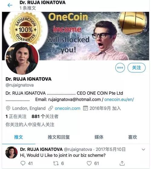 2017年5月10日,维卡币“罪魁祸首”Ruja Ignatova在推特上留下这样一句话后消失于公众视野。