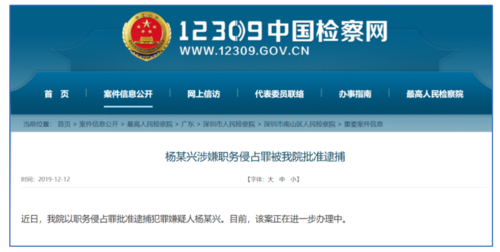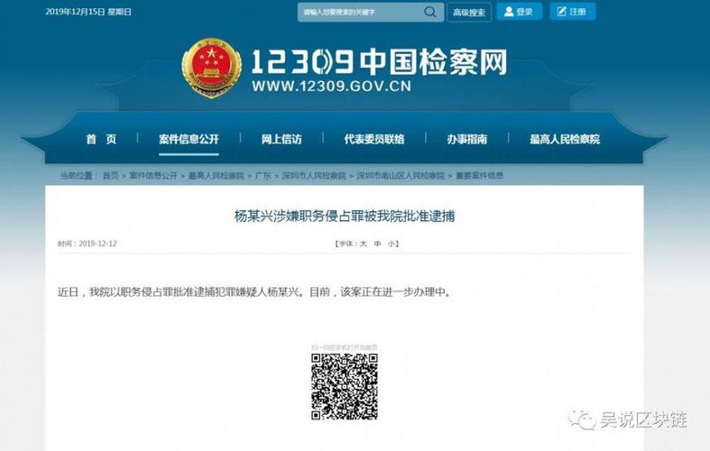 12月12日,深圳市南山区检察院在中国检察网上公开了这一信息:近日,我院以职务侵占罪批准逮捕犯罪嫌疑人杨某兴。目前,该案正在进一步办理中。吴说区块链从多个渠道确认,文中杨某兴即为神马矿机创始人杨作兴。