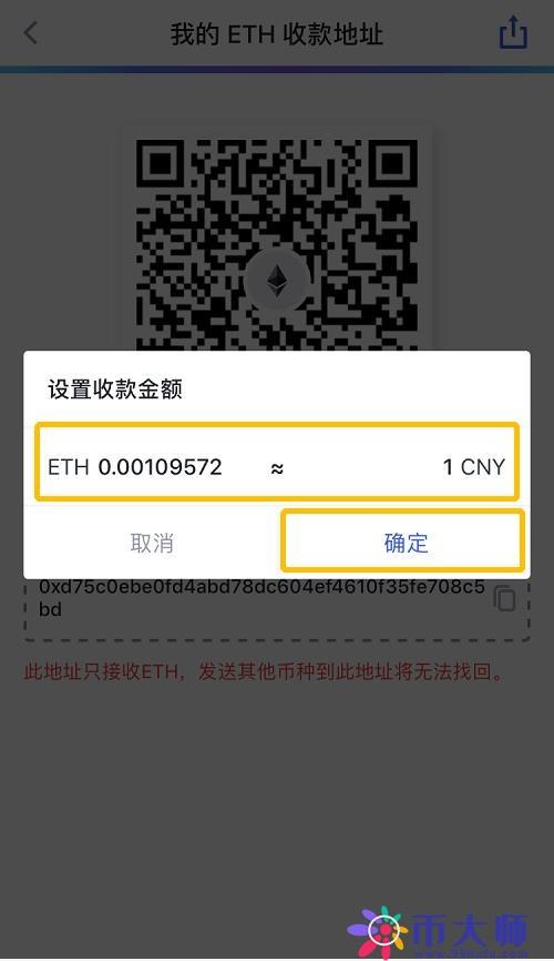 切记:ETH的收币地址只接收ETH,发送其它币种到此地址将无法找回!