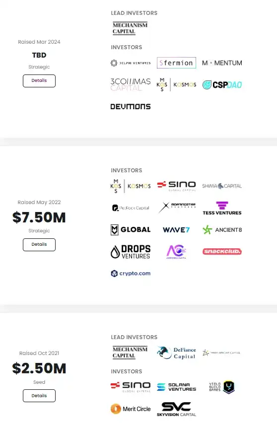 2024 年 3 月 14 日,宣布完成 300 万美元,本轮投资由 Mechanism Capital 领投,Sfermion 等参投。