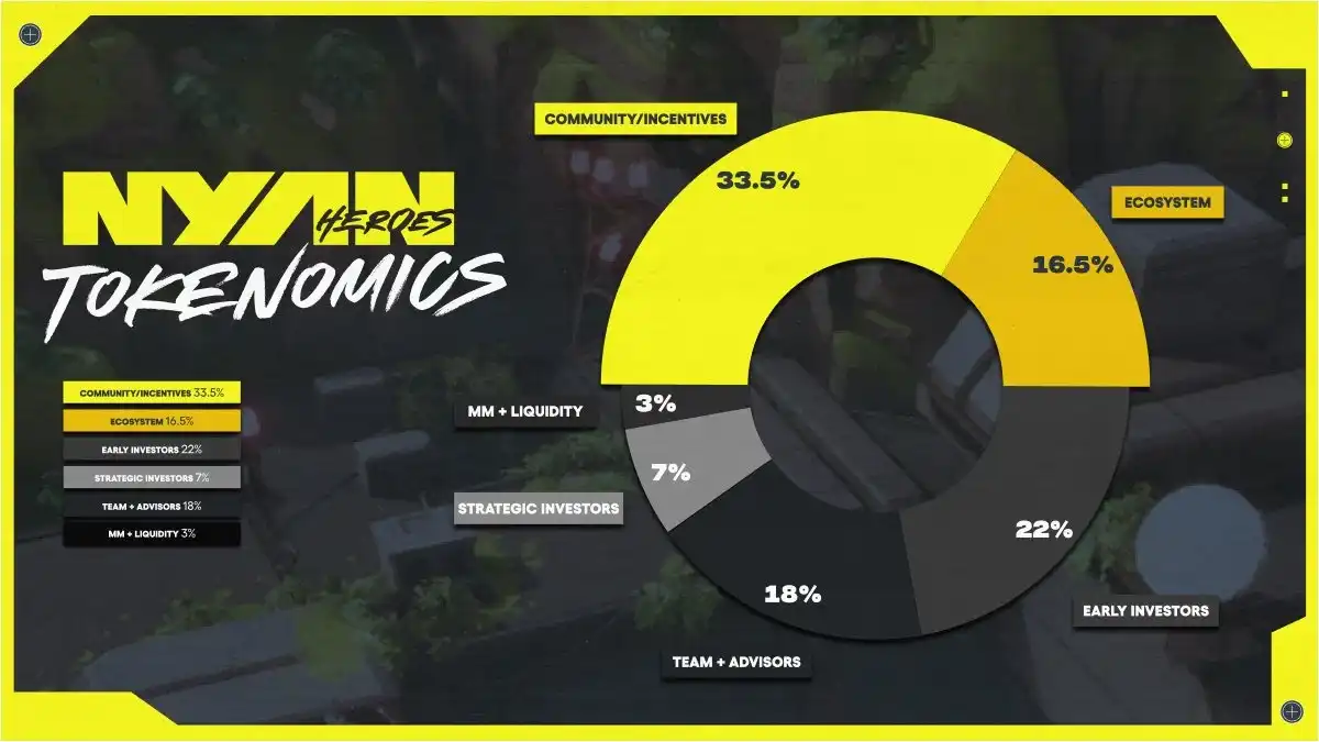 · 社区奖励:335,000,000 NYAN,占总供应量的 33.5%。该部分代币将用于空投季、游戏内奖励、竞赛奖池活动等;