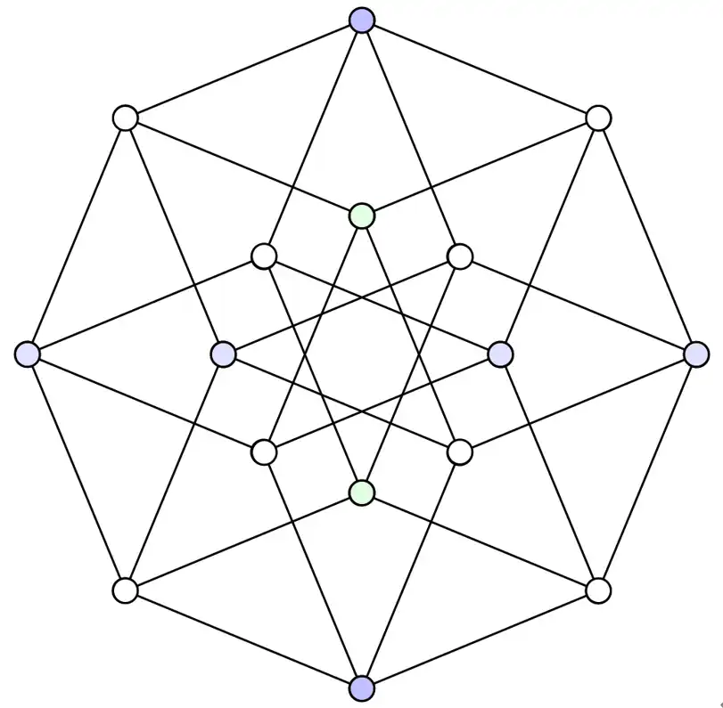当面临更复杂的情况时,就需要一个高效且低成本的路由算法快速完成消息通信,TON 选择了所谓「超立方体路由算法」来实现跨链消息通信路由发现。所谓超立方体结构指的是一种特殊的网络拓扑结构,一个 n 维超立方体是由 2^n 个顶点组成的,每个顶点都可以通过一个 n 位的二进制数来唯一标识。在这个结构中,任意两个顶点如果在二进制表示中只有一位不同,那么它们就是相邻的。例如,在一个 3 维超立方体中,顶点 000 和顶点 001 是相邻的,因为它们只在最后一位上不同。而上述例子即是一个 2 维超立方体。