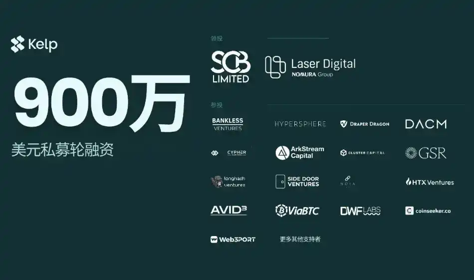 5 月 22 日,Kelp DAO 宣布完成了 900 万美元的私募融资,是其增长历程中的一个重要里程碑。此轮融资由巴哈马的专有交易公司 SCB Limited 和野村集团的数字资产子公司 Laser Digital 领投 350 万美元,剩余投资者包括 Bankless Ventures、Hypersphere、Draper Dragon、GSR、DWF Ventures 等。