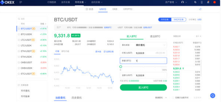 1、打开欧意交易所官网,点击网页上方交易——币币交易,进入币币交易区。