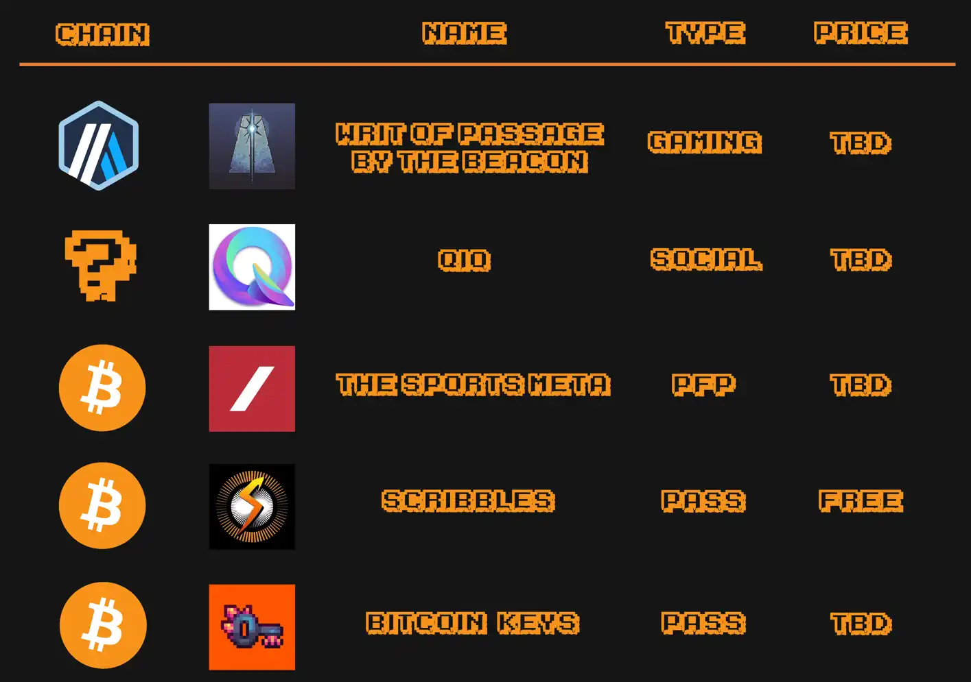 最开始平台只向 Bitcoin Keys 持有者开放,总供应量为 1000,铸造价格待定。