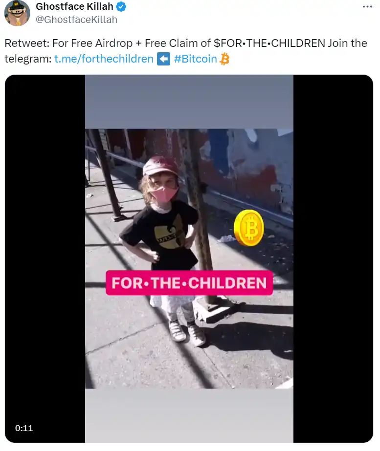 本月早些时候,说唱传奇、Wu-Tang Clan 成员 Ghostface Killah 将他的 PFP 换成了 Bitcoin Puppets。显然,他很喜欢 Ordinals,所以推动着这个符文 FOR•THE•CHILDREN。