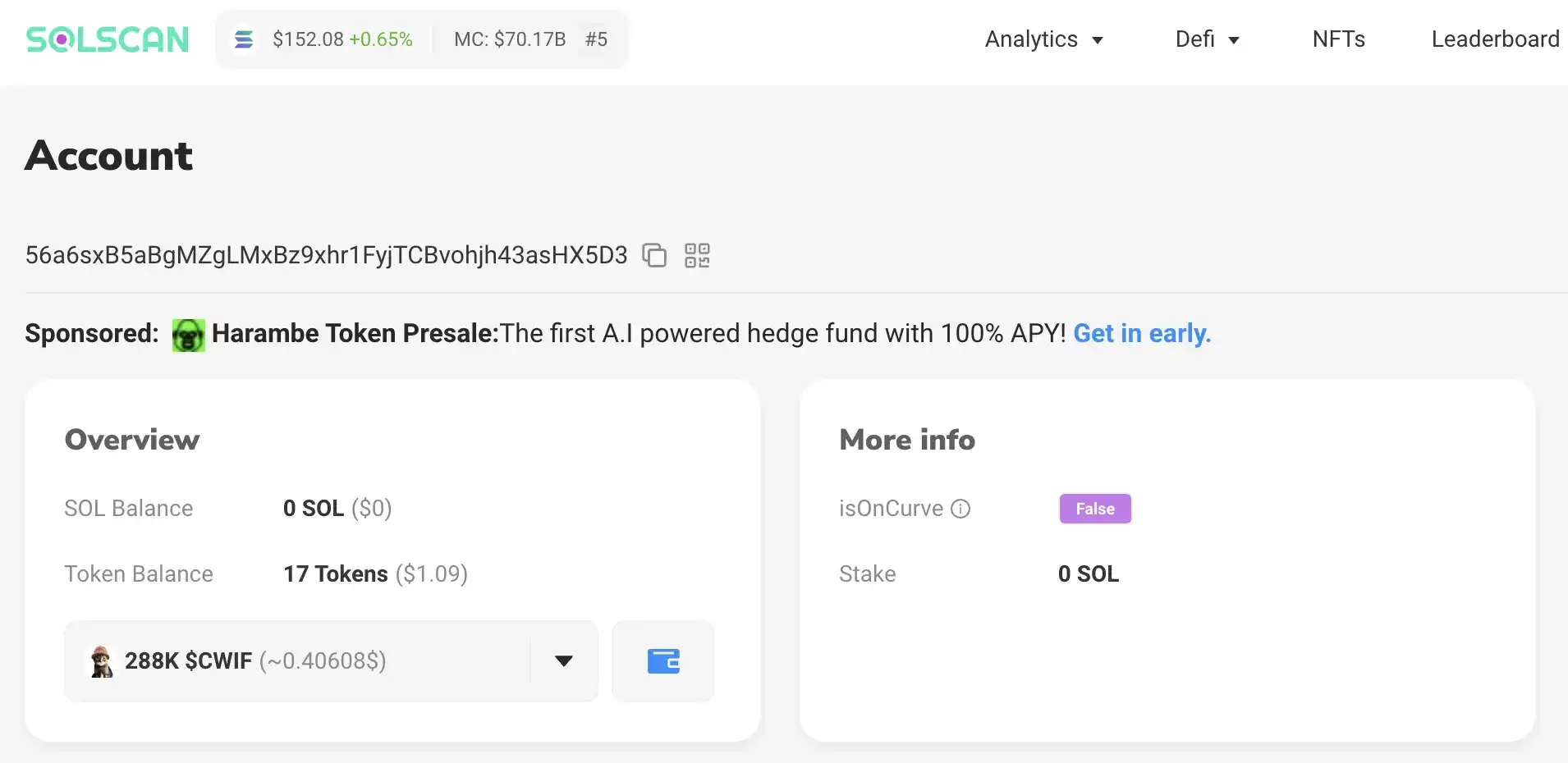 链上追踪地址:https://solscan.io/account/CjeBRyWfpjGo9KSo2erb2hihGiYordjnt876BK5QgoWb