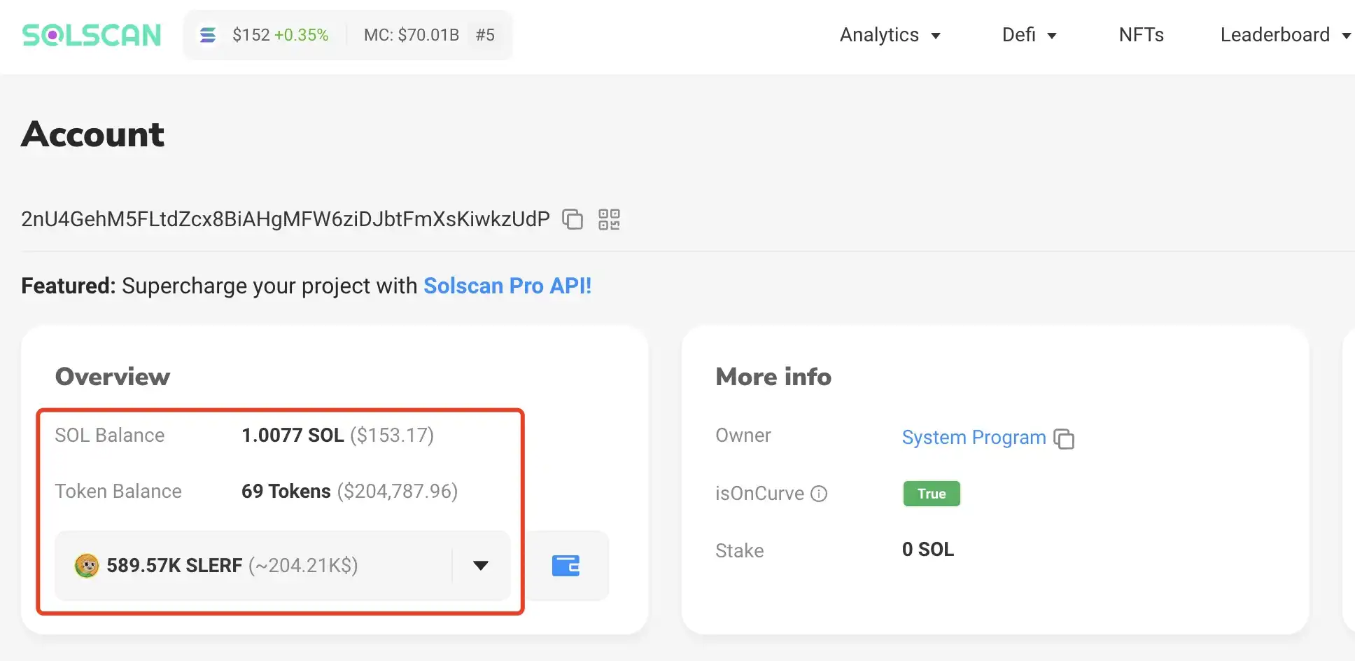 钱包资产:包括 58.9 万枚 SLERF 在内的 69 种 Meme 币,余额为 20 万美元左右。
