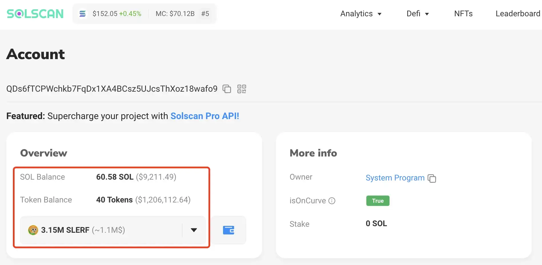 链上追踪地址:https://solscan.io/account/QDs6fTCPWchkb7FqDx1XA4BCsz5UJcsThXoz18wafo9