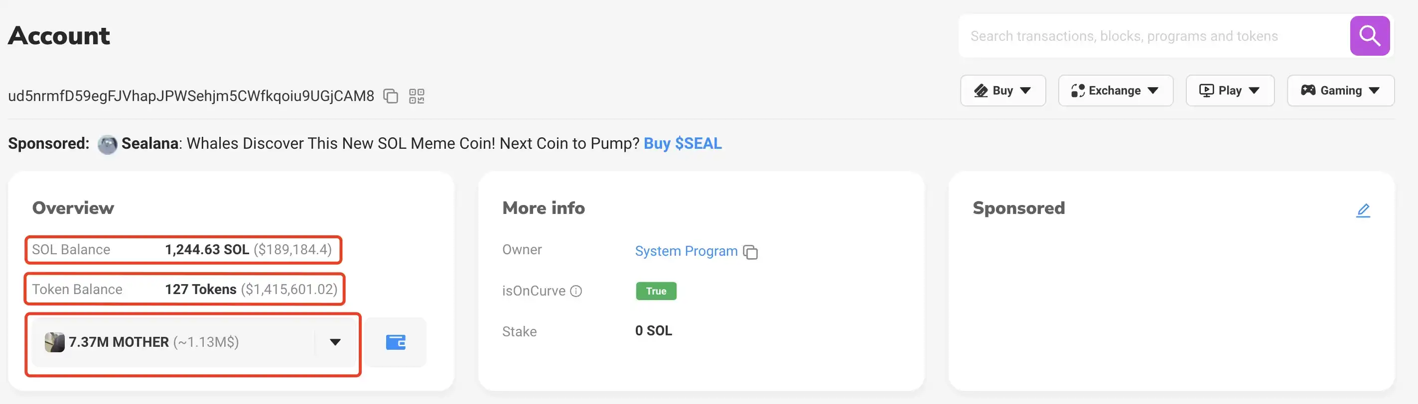 链上追踪地址:https://solscan.io/account/ud5nrmfD59egFJVhapJPWSehjm5CWfkqoiu9UGjCAM8