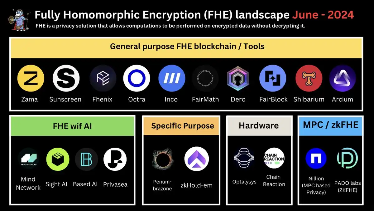 2020 年,Zama 推出 TFHE 和 fhEVM,使 FHE 成为加密货币领域的焦点。从那时起,我们就看到了通用 EVM 兼容的 FHE L1/L2(例如 Fhenix、 Inco 和 FHE 编译器(例如 Sunscreen 等)的出现。