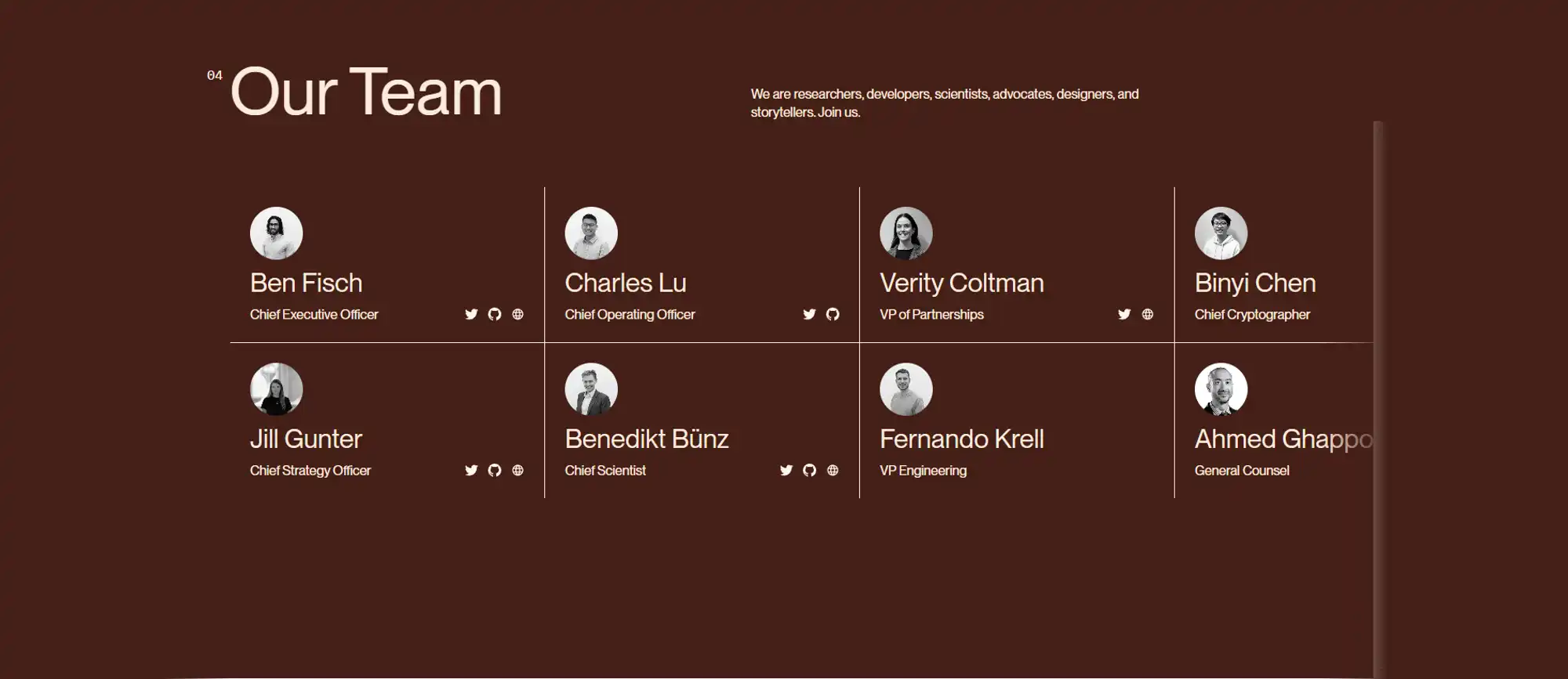 · Benedikt Bünz—- Espresso Systems 的联合创始人兼首席科学家。是斯坦福大学 Dan Boneh 应用密码学小组的博士生。主要关注加密货币的密码学。