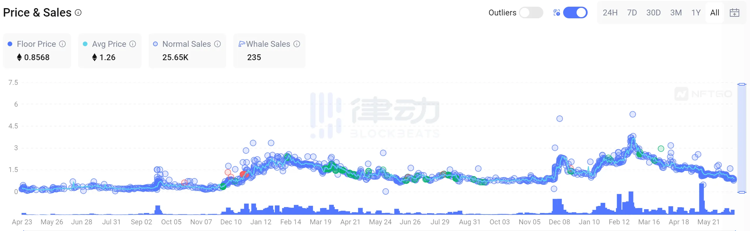 由于 Kanpai Pandas 并不是非常出名的项目,这也因此引发了「老鼠仓」嫌疑。但据 nftgo 数据显示,Kanpai Pandas 交易量高点与 LayerZero 空投快照时间并不存在明显的相关性,且其官推也一直在良好运营。因此,Kanpai Pandas 的「老鼠仓」是存疑的。