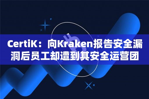 CertiK:向Kraken报告安全漏洞后员工却遭到其安全运营团队威胁