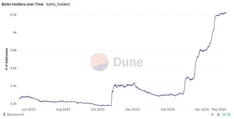 Botto 的艺术越来越好,其每周拍卖的 Botto 作品价格不断上涨。与此同时,拥有者-参与者网络也在不断增长: