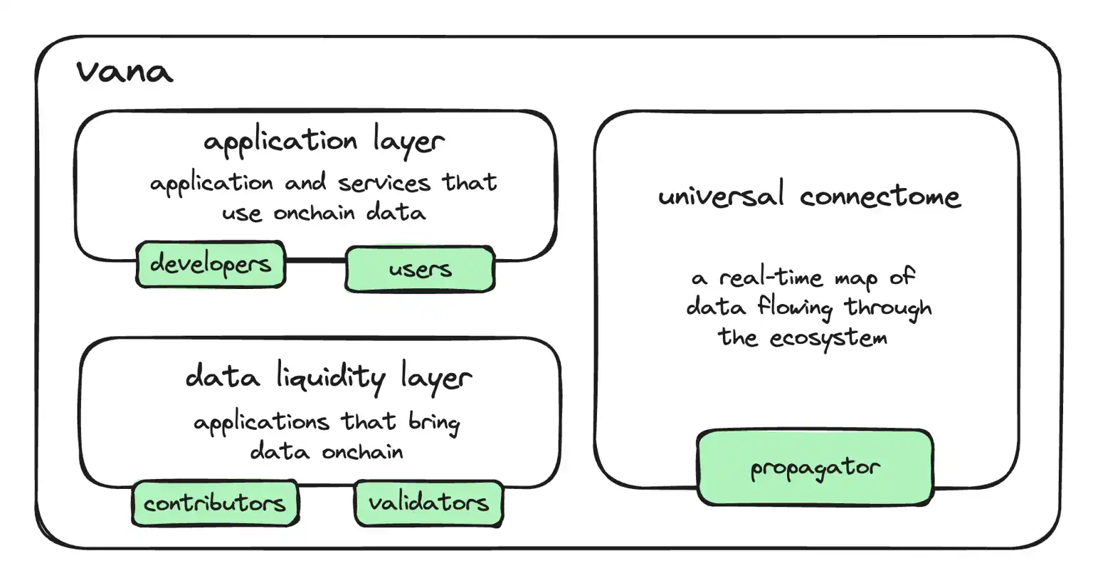 我们的注意力一直放在 r/datadao 上,却忽视了它背后的庞然大物 Vana 到底想做什么。r/datadao 只是 Vana 从巨头手中夺回用户数据权的一次试探,它真正想做的是建立第一个用户自有数据的区块链网络。在这个开放的互联网中,用户拥有并管理他们的数据,以及由这些数据创造的智能产品。用户通过贡献数据获得 AI 模型的所有权,价值流向用户和独立模型开发者,而非中心化的平台。
