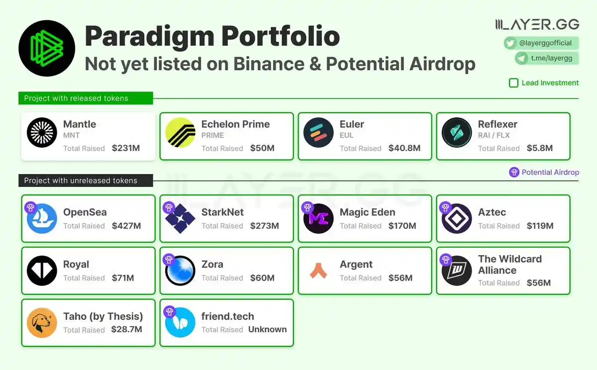 Uniswap、Aptos、Arbitrum、Optimism、TheGraph、IMX、Sei、Ribbon、Worldcoin、Biconomy、Hashflow、Arkham、Maverick、Galxe、Evmos、Goldfinch、Forta、Umee、Connext、Hop、Axelar、Wormhole、Maverick、Arkham、EigenLayer