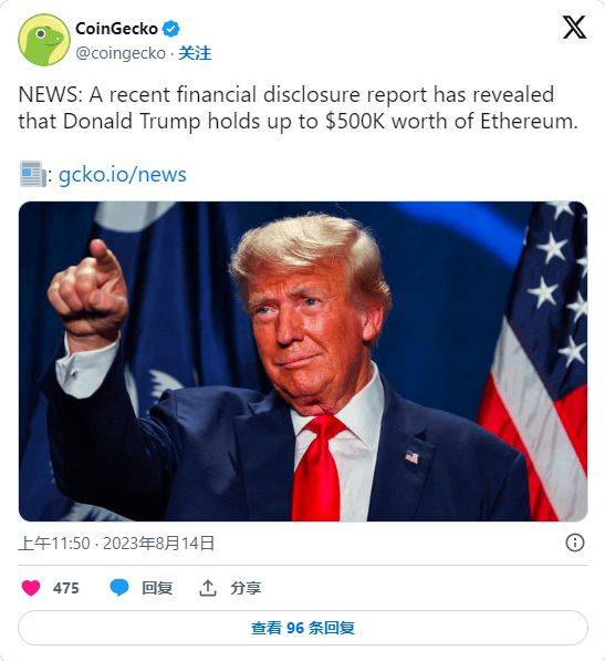 以太坊相关最新消息:特朗普态度转变及持有量分享