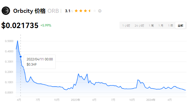 Orbcity 当前价格为 $0.021735。Orbcity 的价格在过去 24 小时内上涨了 6.00%。目前,Orbcity 市值排名为第 274 名,实时市值为 $518.38万,流通供应量为 238,444,245 ORB,最大供应量为 1,000,000,000 ORB。我们会实时更新 Orbcity/USD 的价格。Orbcity 价格表现 (美元)