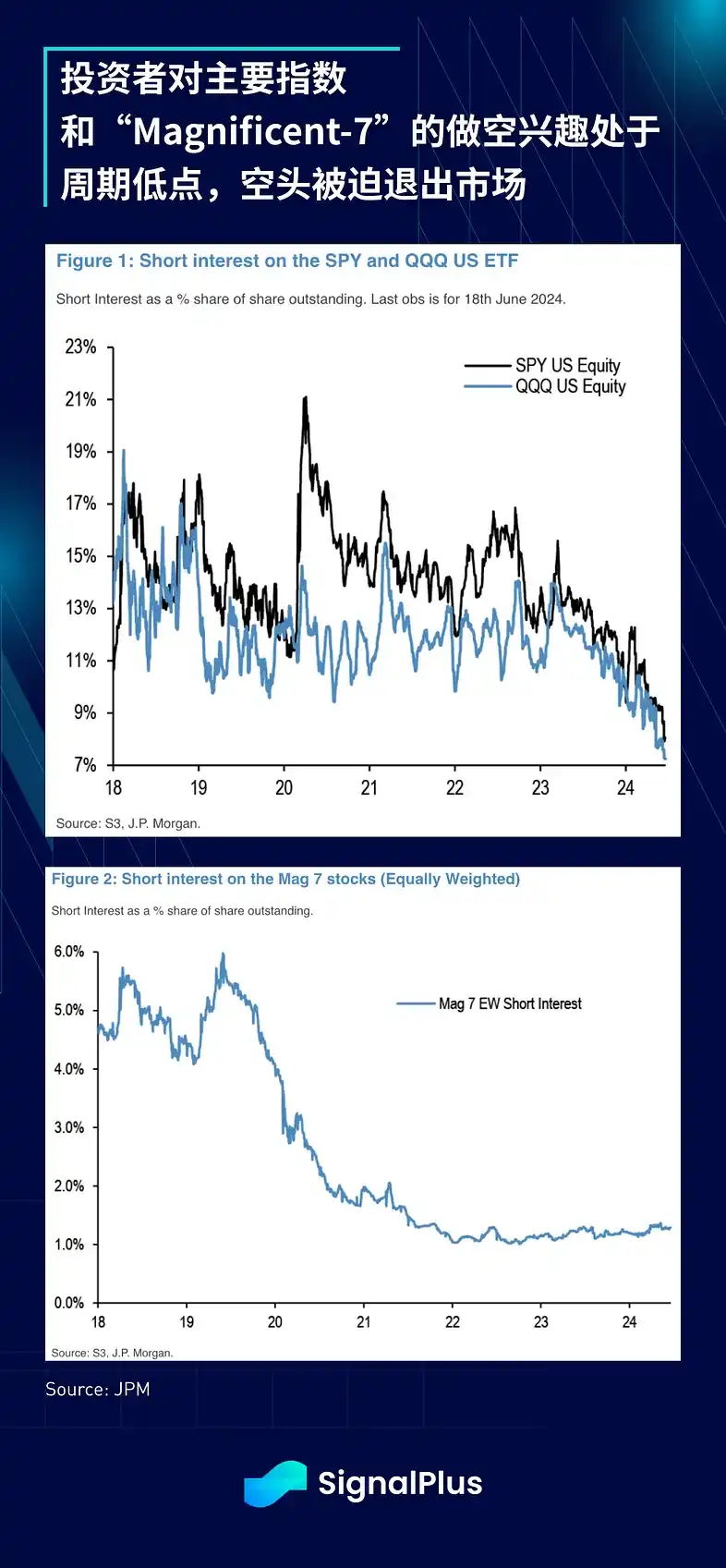 上周五股市收盘,主要指数表现依然强劲。券商报告称,由于主要指数屹立不摇,整周持续空头回补,周五的 PCE 将是本周最重要的数据发布。市场广度较窄、领先族群缩小仍是股市的隐忧,不过目前为止尚未转化为实质性的疲软,做空者持续被淘汰,市场对 SPX、Nasdaq 和「Magnificent-7」的做空兴趣处于多年低点。