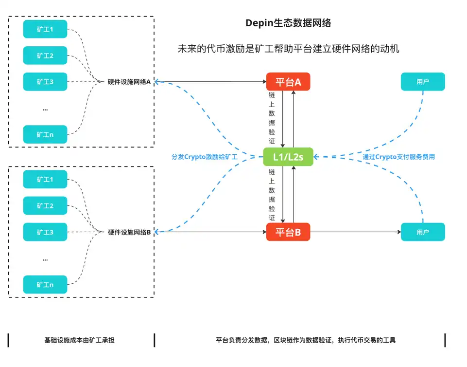 首先是区块链,作为 DePIN 项目代币的结算层,承担的更多是项目代币的结算和数据验证: