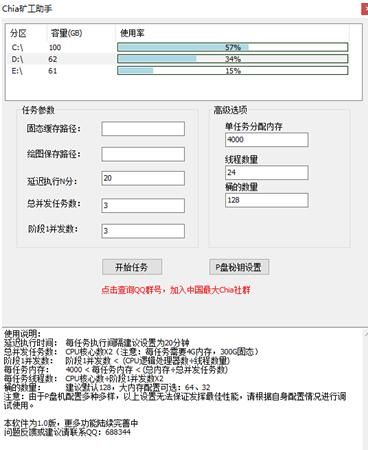 ▼Plot Size按图中的设置即可,每个Plot会占用101.4G空间,下面是生成Plot的数量,根据你的硬盘可用空间来选。