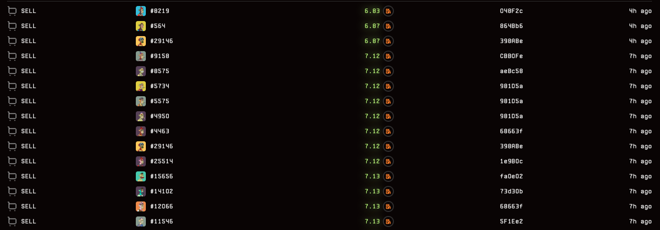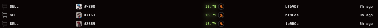 不只是抛售不断探底的BAYC,连价格较为稳健,并且正在拉斯维加斯举办派对的Azuki也被麻吉大哥无情开砸,今日内共卖出3只,得手50颗ETH。