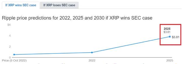 根据 Finder 的预测,如果 Ripple 在 SEC 案中胜诉,到 2025 年 12 月 XRP 可能达到 3.81 美元。与 3.4 美元的 ATH 水平相比,此举意味着增加约 12%。