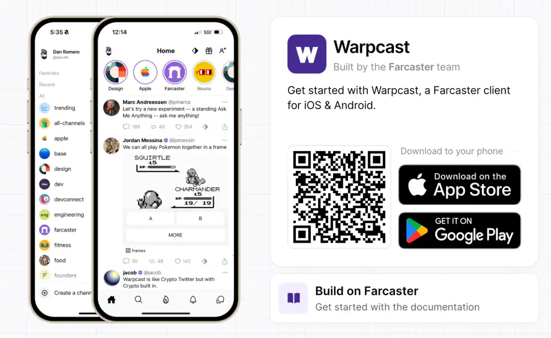 Warpcast 是 Farcaster 协议下的主要应用,也是首个 Farcaster 客户端,由 Dan 组建的顶级工程师团队开发了一年多。