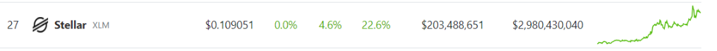 Stellar(XLM)是一个去中心化的区块链平台,旨在彻底改变跨境交易和数字资产转移的世界,已成为当今市场上最有前途的加密货币之一。随着最近的飙升,Stellar 引起了广泛关注,并迅速成为当天涨幅最大的股票之一。随着比特币价格的持续攀升,它重新激发了整个加密货币市场的兴趣和热情,使像恒星币这样的山寨币受益。
